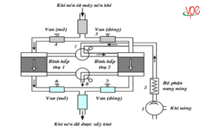 - Hệ thống gia nhiệt: Bao gồm các thanh điện trở công suất cao để làm nóng không khí nhanh chóng.