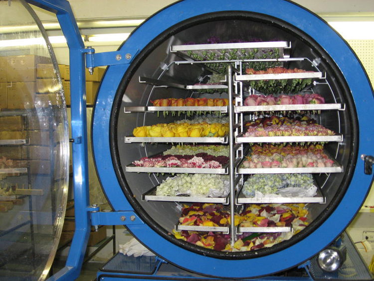 - Hơi ẩm được tách ra từ nguyên liệu và được đẩy ra ngoài qua hệ thống thông gió, giúp sản phẩm khô dần.