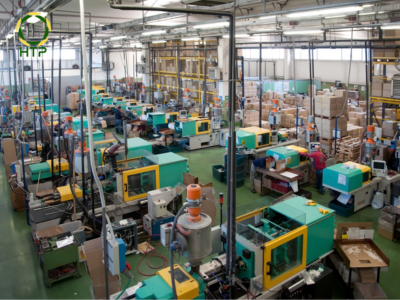 Hình ảnh dây chuyền máy ép nhựa công nghiệp với số lượng lớn
